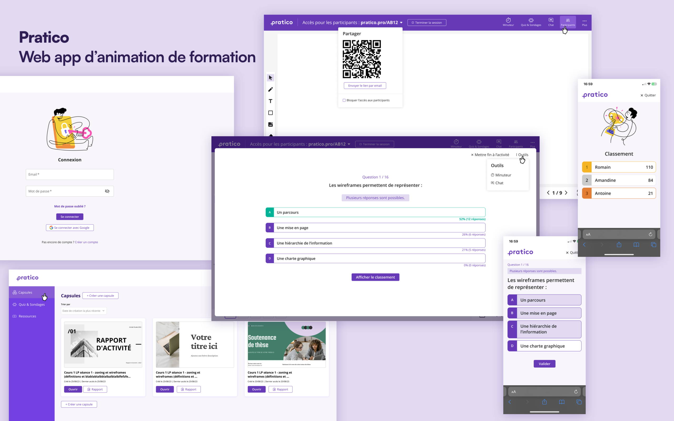 • Réalisation de maquettes Figma pour un parcours formateur (desktop) et un parcours apprenant (mobile)